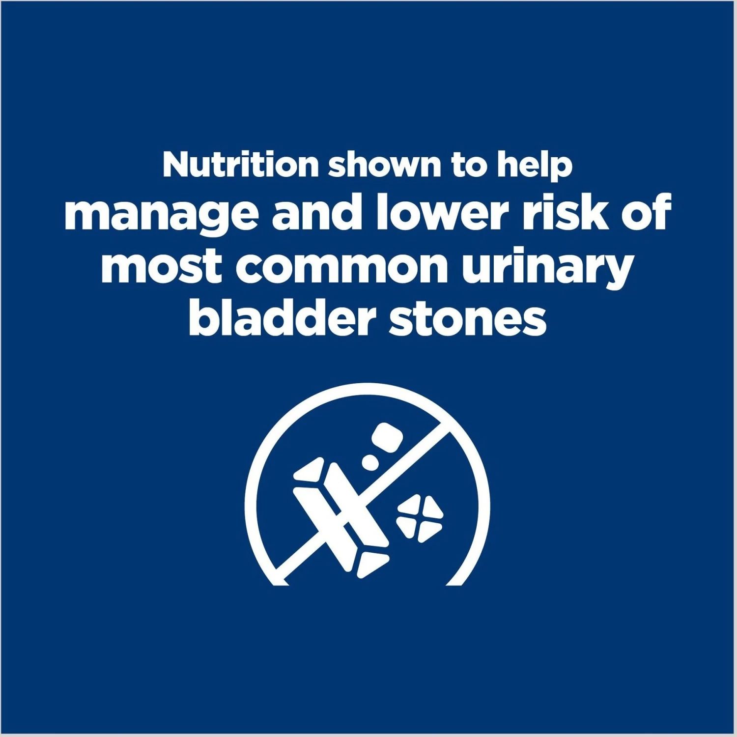 Help your canine companion maintain normal bladder health with Hill’s Prescription Diet c/d Multicare Urinary Care Chicken Flavor Canned Dog Food. Bladder stones are collections of mineral crystals that combine together in the urinary tract and create discomfort that can lead to more serious problems requiring the care of a veterinarian. Because the food your dog eats plays an important role in her overall health and well-being, Hill’s nutritionists and veterinarians have developed clinical nutrition especially formulated to help support her bladder and healthy urinary function. It’s formulated with a precise balance of minerals to deliver the essential nutrition she needs without overloading her system, which could encourage the formation of crystals.