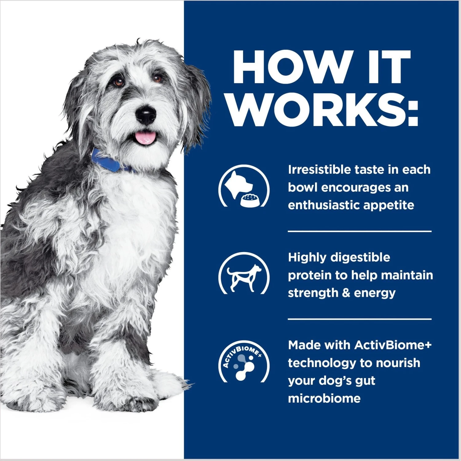 - Formula supports your pup’s gut bacteria for a healthy GI microbiome balance.