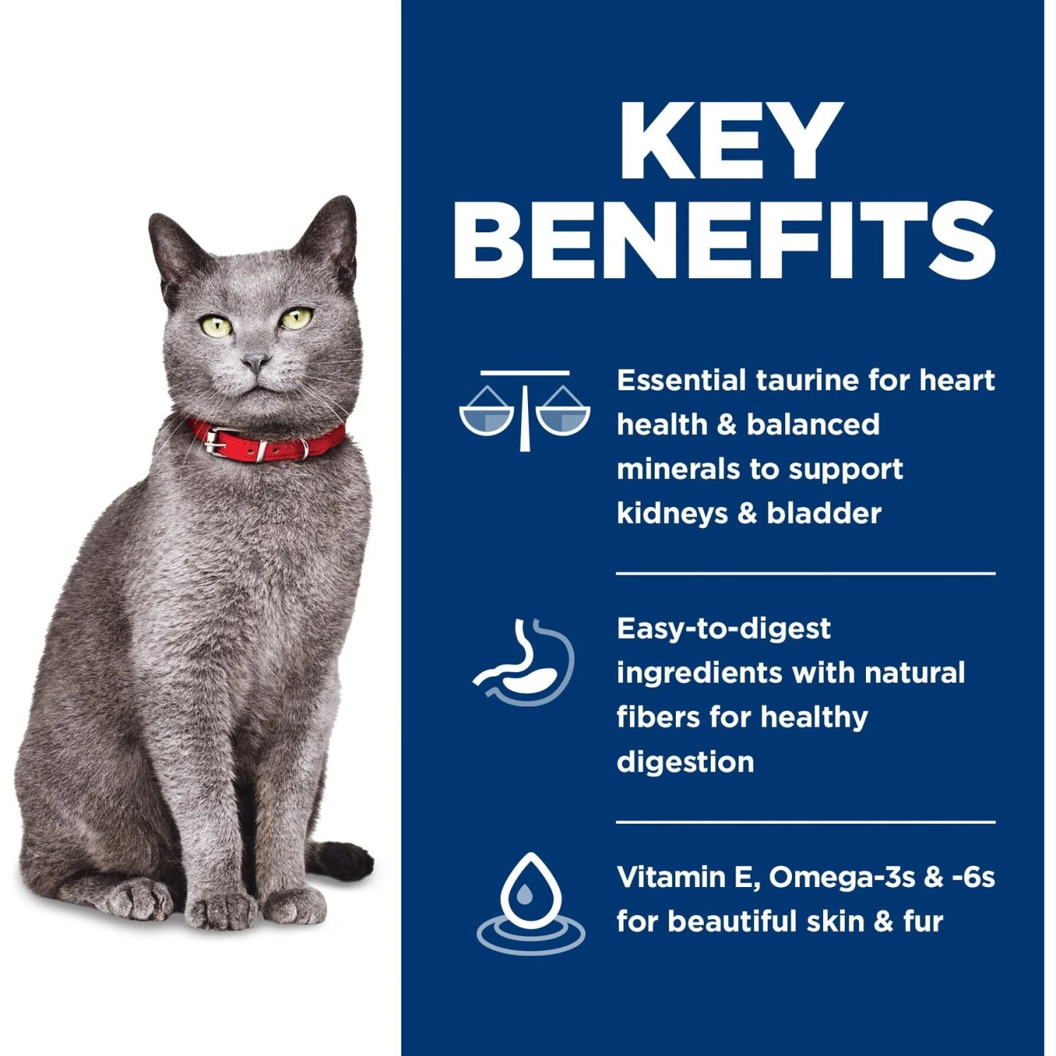 With the right nutrition, cats can be fabulous felines at any age—help support your older kitty’s needs with Hill’s Science Diet Senior 7+ Chicken Flavored No Corn, Wheat or Soy Dry Cat Food! Specifically formulated for your aging kitty, this dry cat food is made with natural ingredients and added vitamins, minerals and amino acids to help support your kitty’s heart, kidneys and bladder. The high-quality protein formula helps encourage lean muscles on your older feline friend. Included antioxidants and vitamins C and E also help support a healthy immune system. Made in the USA with no corn, wheat or soy, this senior cat food is both a delicious and nutritious meal that will help support your senior pal’s health and energy!