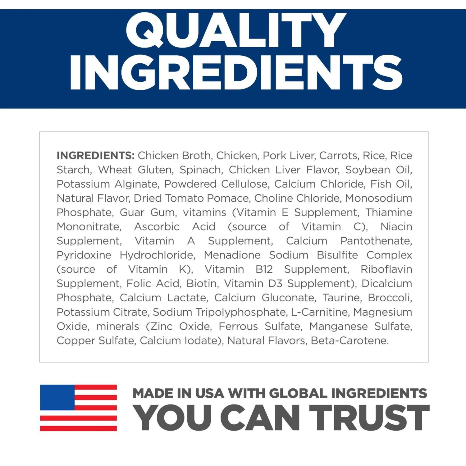 Help keep your cat feeling and acting young with the Hill’s Science Diet Adult 7+ Senior Vitality Chicken & Vegetable Stew Canned Cat Food. Because every moment you spend with your pet is special, this delicious stew recipe is packed with all kinds of youth-preserving goodness. Including powerful antioxidants for a healthy brain, as well as nutrients that support activity and an interest in playing, it’s all made with quality ingredients that are easy to digest. Plus, it’s recommended by veterinarians so you know you’re feeding your cat the very best.