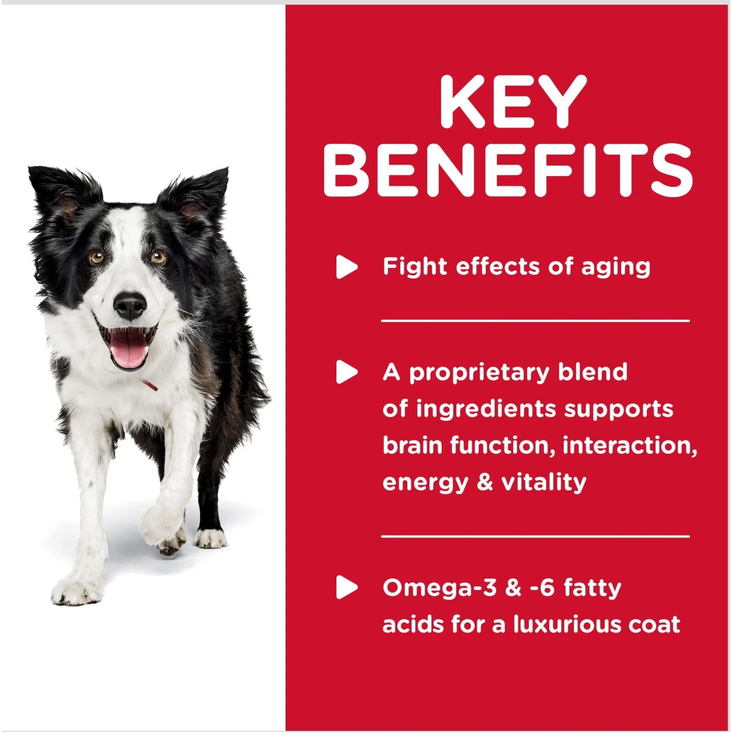 - Protein, phytonutrients, and L-carnitine help get your dog moving and interested in playing.