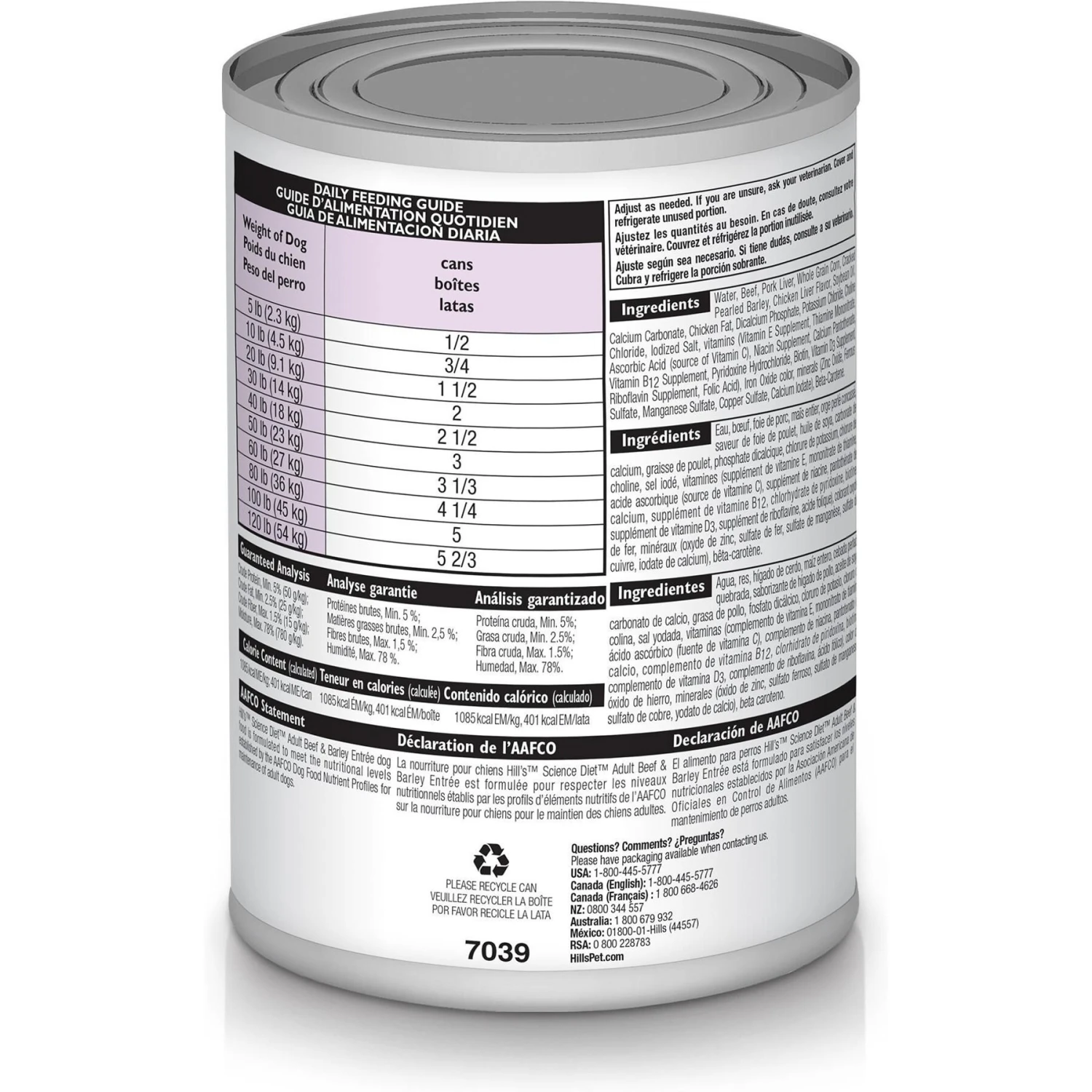 The Hill’s Science Diet Adult Beef & Barley Entree Canned Dog Food is a su-paw tasty way to support your furbaby’s health and fitness. This delicious formula is full of high-quality protein to support lean muscle. It promotes an ideal body weight for advanced fitness, and is easy to digest, too. This food is full of quality ingredients and is paw-fect for dogs age one to six.