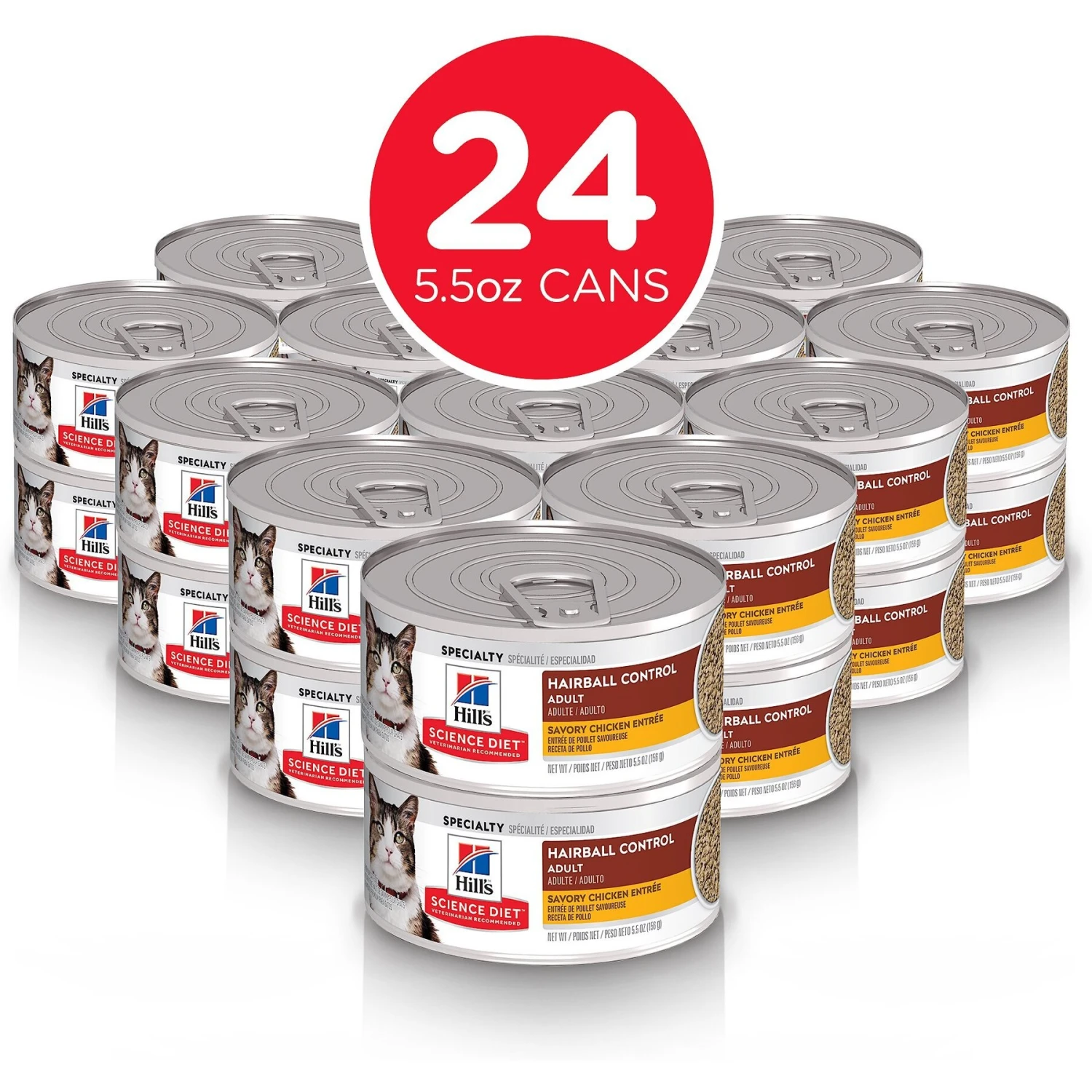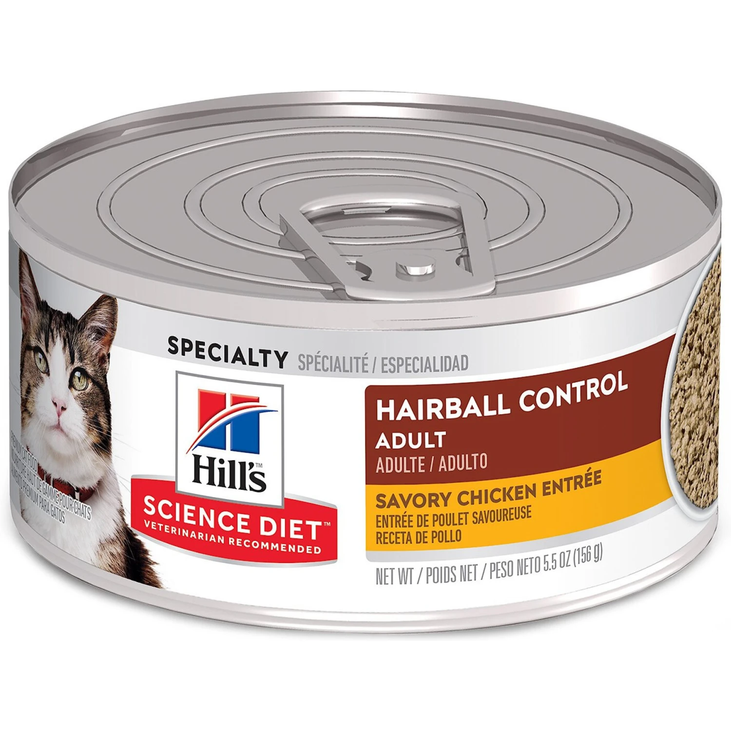 - Wet food formulated for your adult cat packed with fiber to help comfortably reduce hairballs.