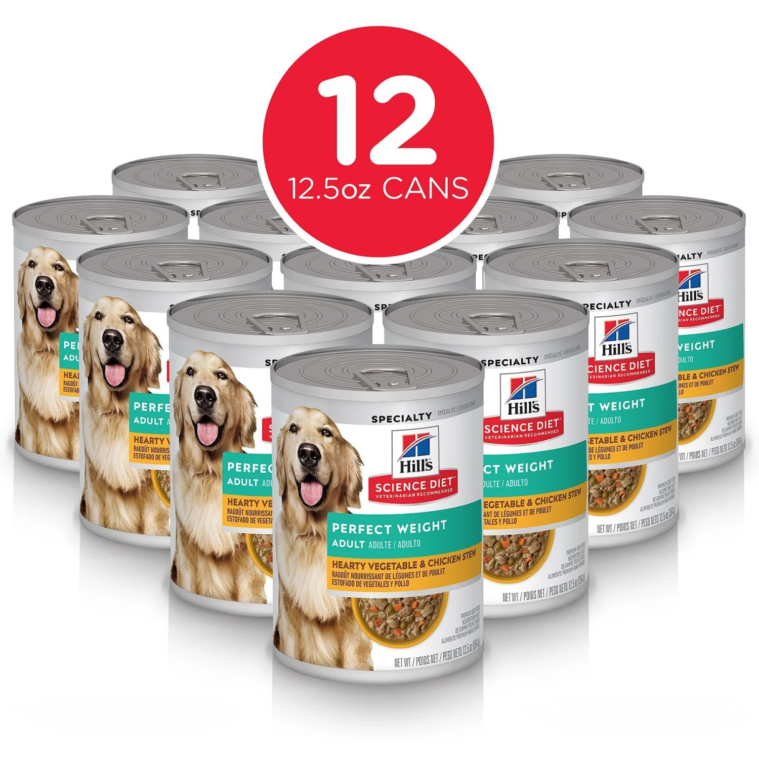 Hill’s Science Diet Adult Perfect Weight Hearty Vegetable & Chicken Stew Canned Dog Food provides breakthrough nutrition that’s formulated to help your dog achieve a healthy weight. This lean and delicious recipe delivers 100% precisely balanced nutrition and contains prebiotic fibers for gentle digestion. Over 70% of dogs lost weight within 10 weeks when fed Adult Perfect Weight, adding not only to their life expectancy but also their overall quality of life.