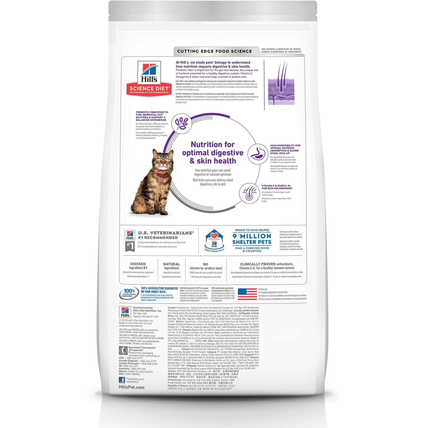 Help purr-vide your feline friend with optimal digestive health that also helps nourish her skin and promotes lustrous fur. Your kitty’s stomach health is a very important part of her everyday life, that’s why Hill’s Science Diet Adult Sensitive Stomach & Skin Chicken & Rice Recipe is crafted with natural ingredients like prebiotic fiber, to help fuel your adult cat’s beneficial gut bacteria and support a balanced microbiome. And with easily digestible ingredients, this dry cat food recipe allows her stomach to process nutrients quickly—this can lead to easier stool pickup as well. And with vitamin E and omega-6 fatty acids to nourish skin and coat health, there’s more to love with Hill’s Science Diet.
