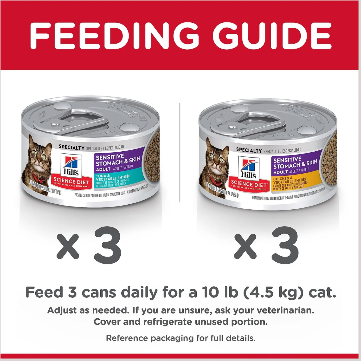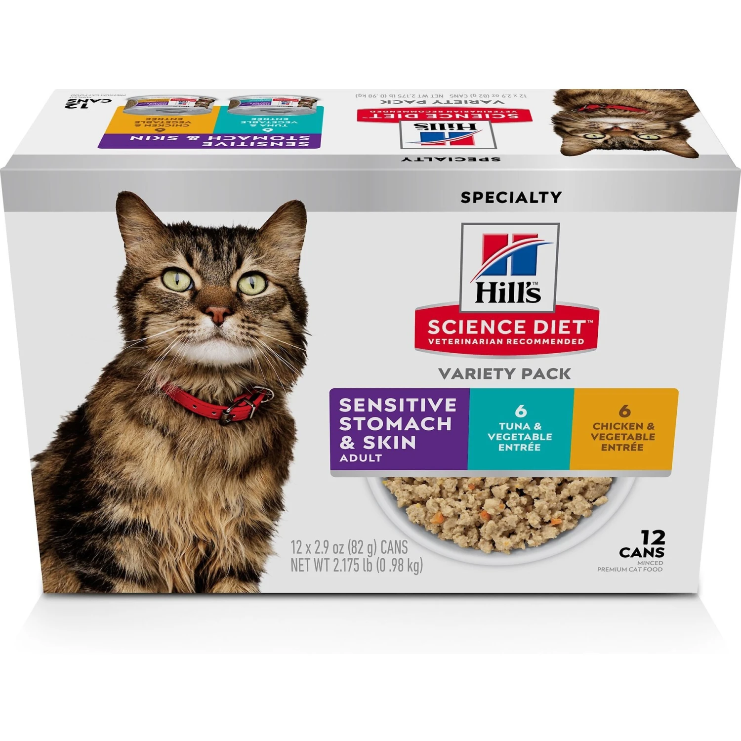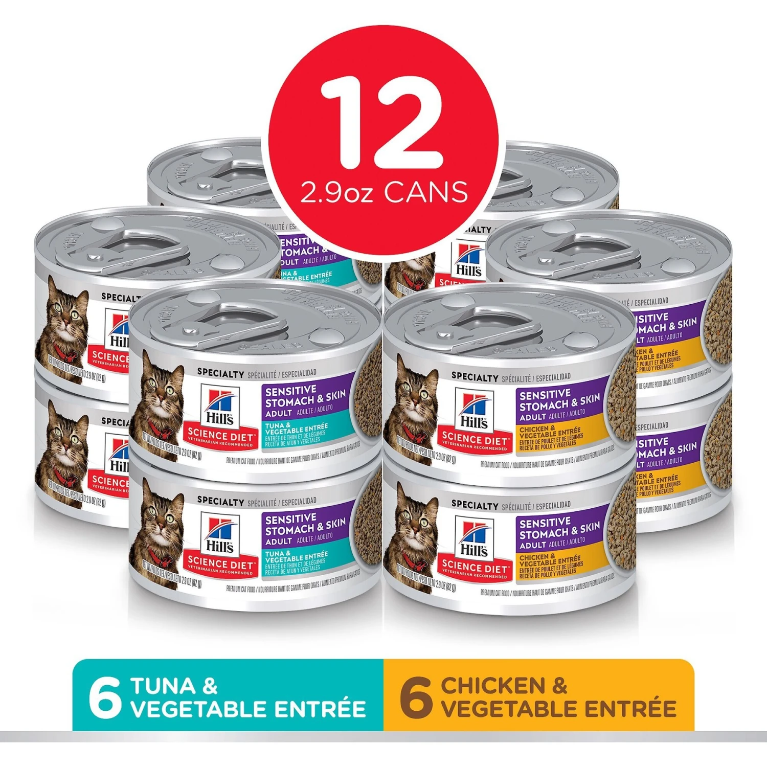 Provide your furry friend with some relief with Hill’s Science Diet Adult Sensitive Stomach & Skin Tuna & Vegetable & Chicken & Vegetable Cat Food. It features two different diets with easy-to-digest ingredients to give your paw-tner optimal digestive and skin health. Each diet contains natural fibers to help promote easy stool cleanup with omega 6s and vitamin E to nourish your kitty’s skin and add luster to her fur. They are also grain-free and made with natural ingredients. Made in the USA, Hill’s Science Diet Adult Sensitive Stomach & Skin Tuna & Vegetable & Chicken & Vegetable Cat Food will provide much-needed support for your companion.