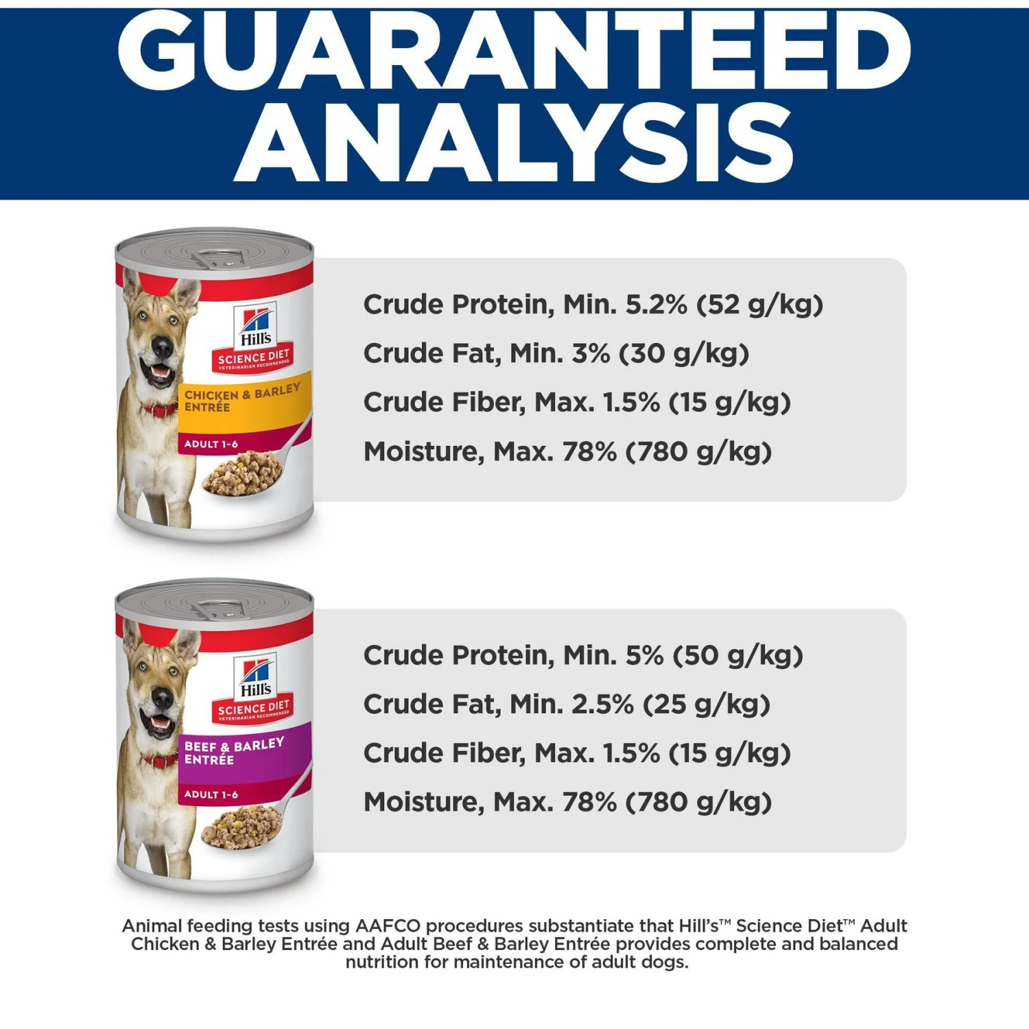 Start your best bud’s morning off on the right paw with Hill’s Science Diet Variety Pack Adult Canned Dog Food. Two tail-wagging good flavors feature beef and chicken, indulging your furry friend’s appetite in a balanced diet that’s nutritious and great tasting. Both varieties provide your pooch with the energy he needs to continue his active lifestyle, fueling him with high-quality protein and powerful antioxidants. The food is made in the USA with ingredients that are designed to support a healthy digestion, immune system and paw-sitively gorgeous coat!