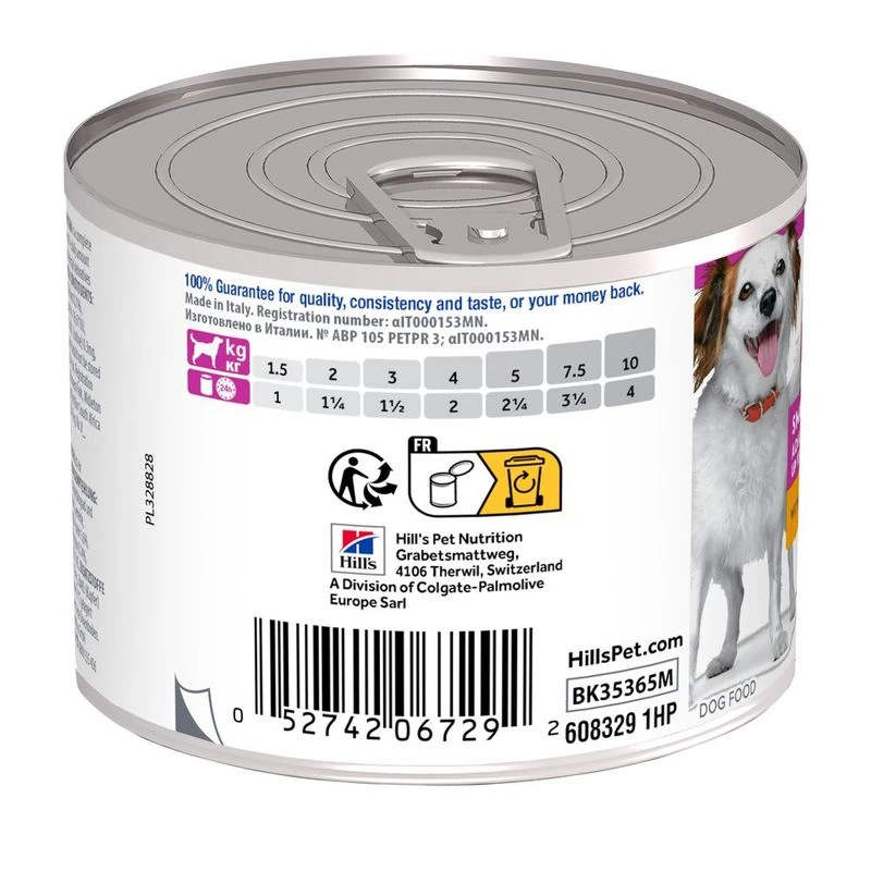 Hill’s Science Plan Adult Small & Mini Mousse offers a delicious meal in a soft mousse texture, ideal as a complete food for small breed adult dogs aged 1 – 6 years. The tailored wet food has been developed to meet the needs of adult dogs during the prime years of their life. The balanced recipe and a powerful mix of antioxidants can help to support your dog’s immune system and strengthen immunity, as well as offering an optimum meal.