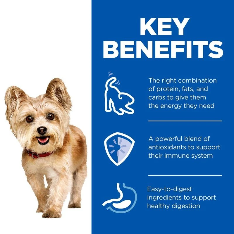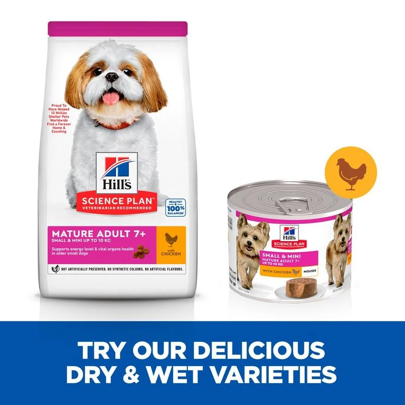 Hill’s Science Plan Mature Small & Mini Mousse is an irresistible wet food that has been developed to meet the special nutritional needs of small breed senior dogs over the age of 7 years. The soft mousse texture offers delicious enjoyment, as well as containing an ideal combination of proteins, fats and carbohydrates. This ensures your dog receives all the necessary energy it needs for this life stage.